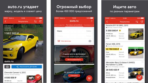 Задумались обновить автомобиль или купить новый? Это можно сделать прямо в мобильном телефоне. В Auto.ru полмиллиона объявлений о продаже, вы легко сможете найти подходящую модель. Если вы увидели на улице автомобиль, который хотите купить, но не знаете его модель, сфотографируйте его и загрузите снимок в приложение. Оно выдаст вам полную информацию о модели и сразу предложит варианты, которые есть в продаже.Связаться с владельцем понравившегося автомобиля вы можете прямо в мобильном приложения. А если сами захотите продать машину — создать объявление легко за пару минут.