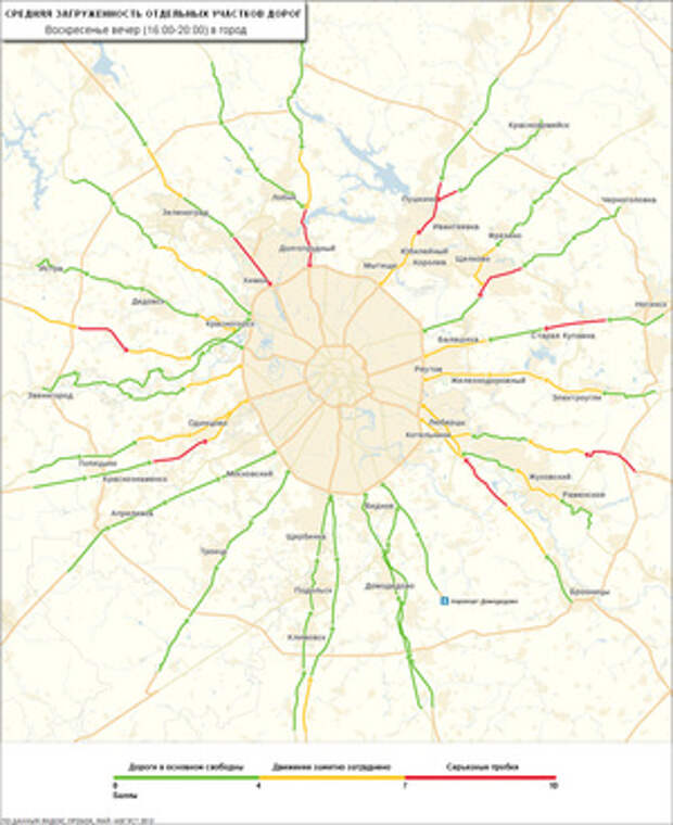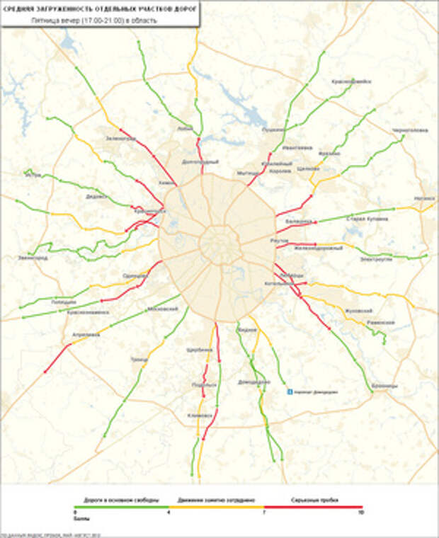 Дольше всего до дачи добираются по Дмитровскому шоссе и трассам восточного направления: Егорьевскому и Носовихинскому шоссе, а также трассе А102 (средняя скорость в пятницу вечером здесь не превышает 20 километров в час).