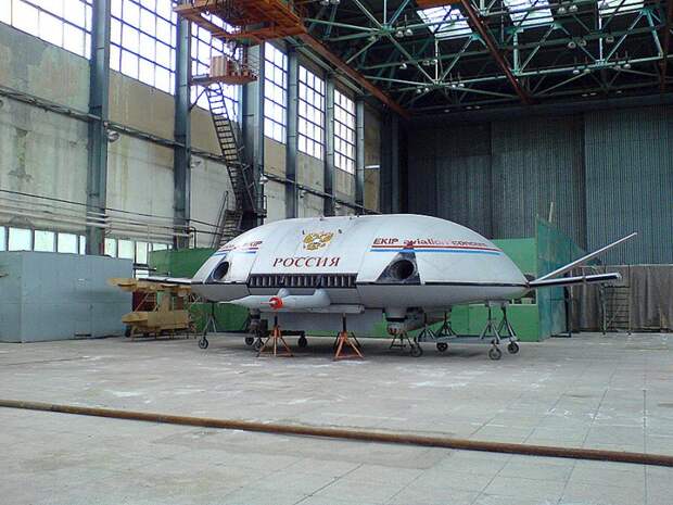 Благодаря этому мы получили большую площадь несущей поверхности. Вместо шасси “приспособили” воздушную подушку. Нет шасси (в самолетах это одно из самых уязвимых мест) — и отпала тьма проблем. “ЭКИП” может взлететь с любого поля, лесной поляны, с водной поверхности. И туда же садиться. Давление на грунт совсем ничтожное — даже пашне, случись аварийная посадка, вреда не нанесет. Но аппарат, кстати, практически безавариен. Вся соль гладкого скольжения по воздуху — в безотрывном ламинарном обтекании машины воздушным потоком, что помогает ей “чувствовать” себя в полете едва ли не как рыбе в воде. Предположим, остановились все двигатели — аппарат будет планировать, и скорость снижения составит не больше трех метров в секунду. Никакого заваливания, опрокидывания, штопора не может быть…"ЭКИП" (переводится "Экология и прогресс") - это, наверное, один из самых необычных советских летательных аппаратов, или, точнее, целое семейство летательных аппаратов. Его внешний вид напоминает инопланетный корабль, его способность взлетать и садиться на любую поверхность также наводит на мысль об инопланетных технологиях, ну а уж его принцип полета - это вообще что-то запредельно элегантное. Слово Льву Николаевичу Щукину: